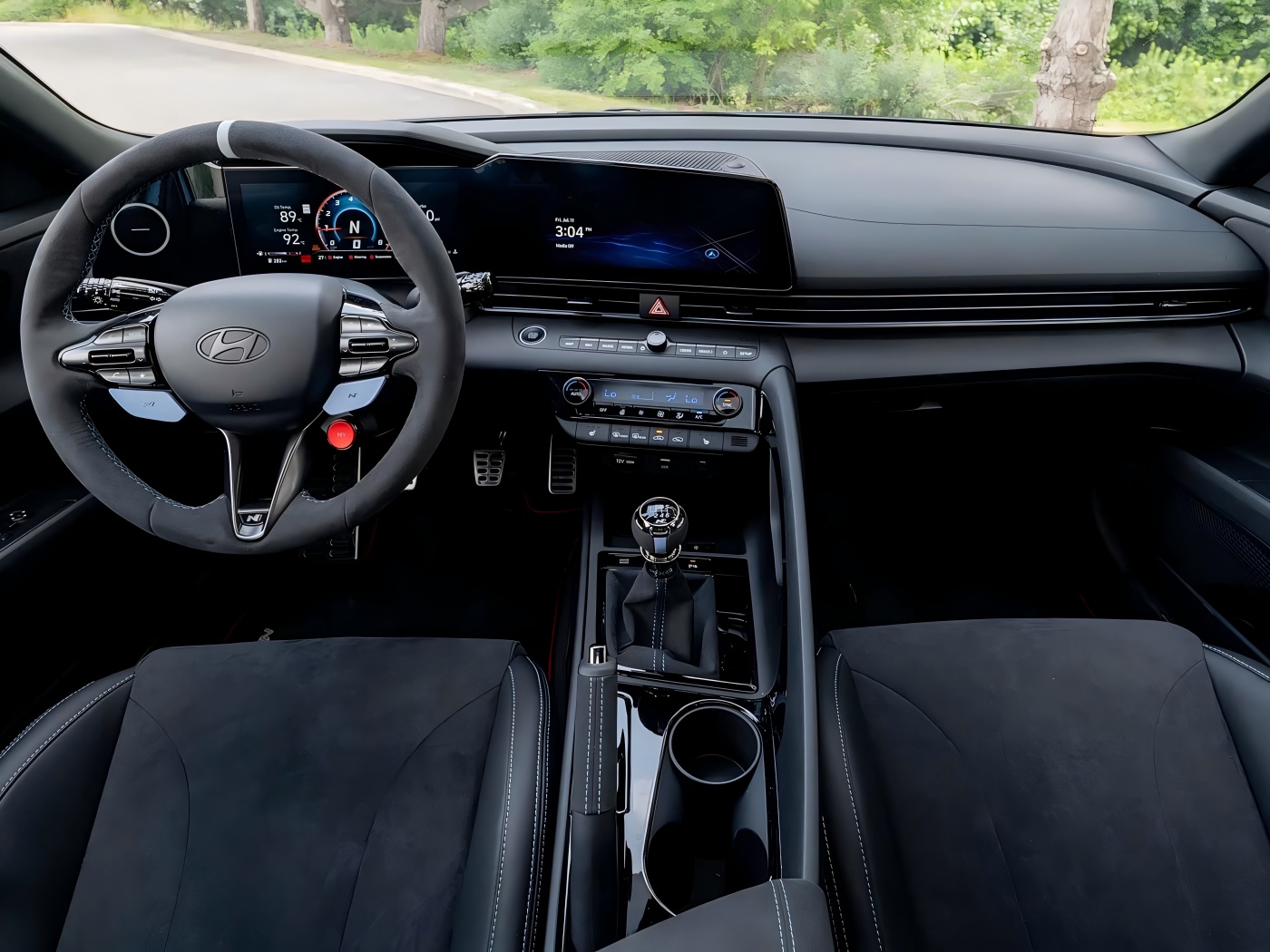 En cuanto al interior, el diseño general del nuevo coche no es muy diferente del del Elantra N, pero está equipado con un volante de Alcantara "N Performance" con un marcador de posición a las 12 en punto. Mientras tanto, la primera fila está equipada con cinturones de seguridad azules, los umbrales de las puertas están equipados con protectores de umbral metálicos N Performance y el automóvil también cuenta con tapetes N Performance, así como una gran cantidad de kits interiores de Alcantara. Por ejemplo, la palanca del freno de estacionamiento manual, la palanca de cambios y el reposabrazos de la caja del reposabrazos están forrados en Alcantara. Finalmente, hay un logotipo de "versión TCR" en las luces de las manijas de las puertas, que está lleno de atractivo emocional.