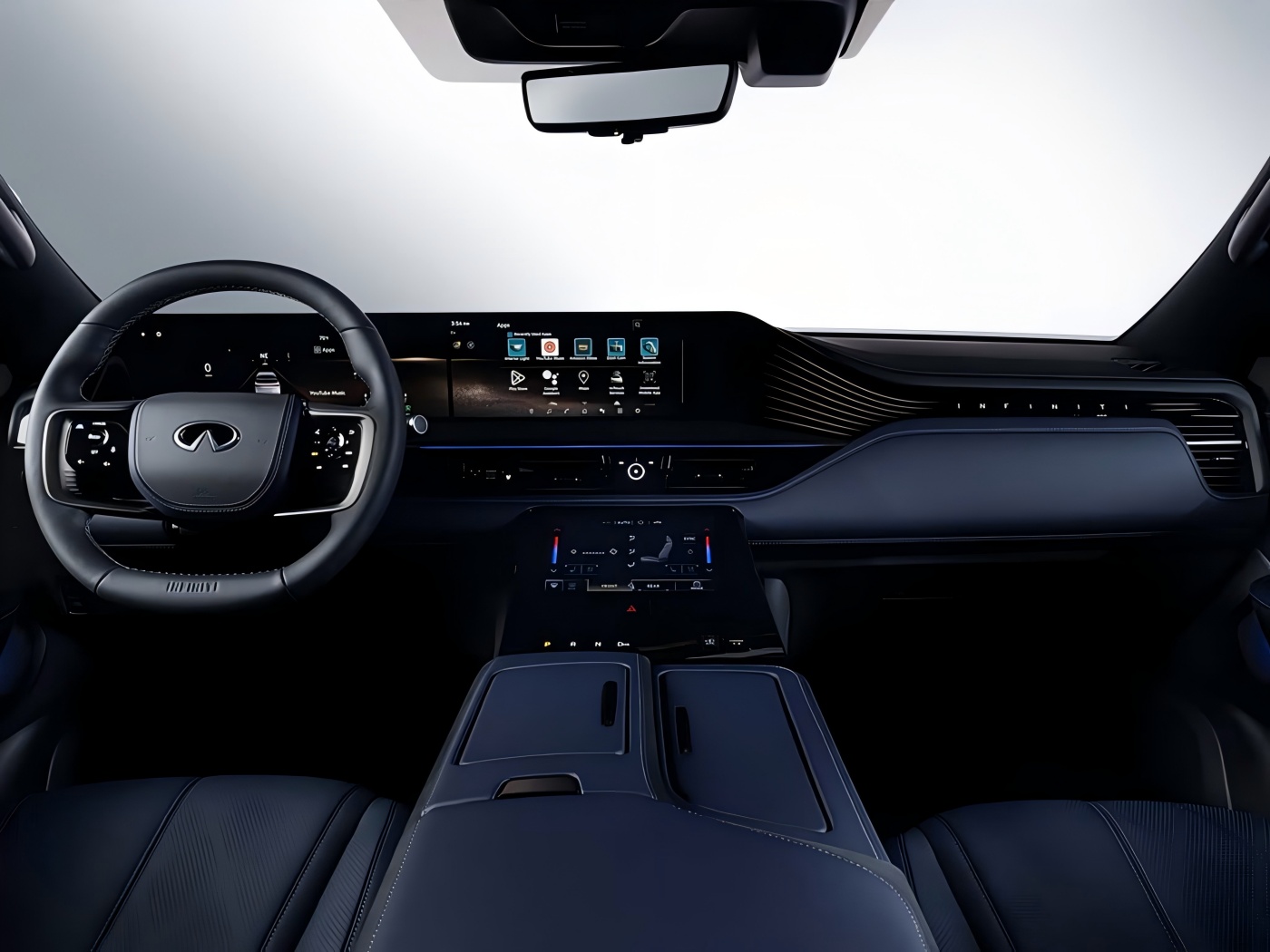 La cabina adopta un esquema de color Twilight Blue, con asientos de cuero semianilina negro y azul con patrones perforados en forma de diamante, continuando con el tema oscuro del exterior. Además, el interior está equipado con una configuración de pantalla dual de 14,3 pulgadas y una pantalla de control multifunción de 9 pulgadas ubicada en la parte inferior de la consola central. El cambio de marcha se controla mediante botones debajo de la pantalla. Tanto la cúpula trapezoidal como el volante de dos radios tienen diseños distintivos.