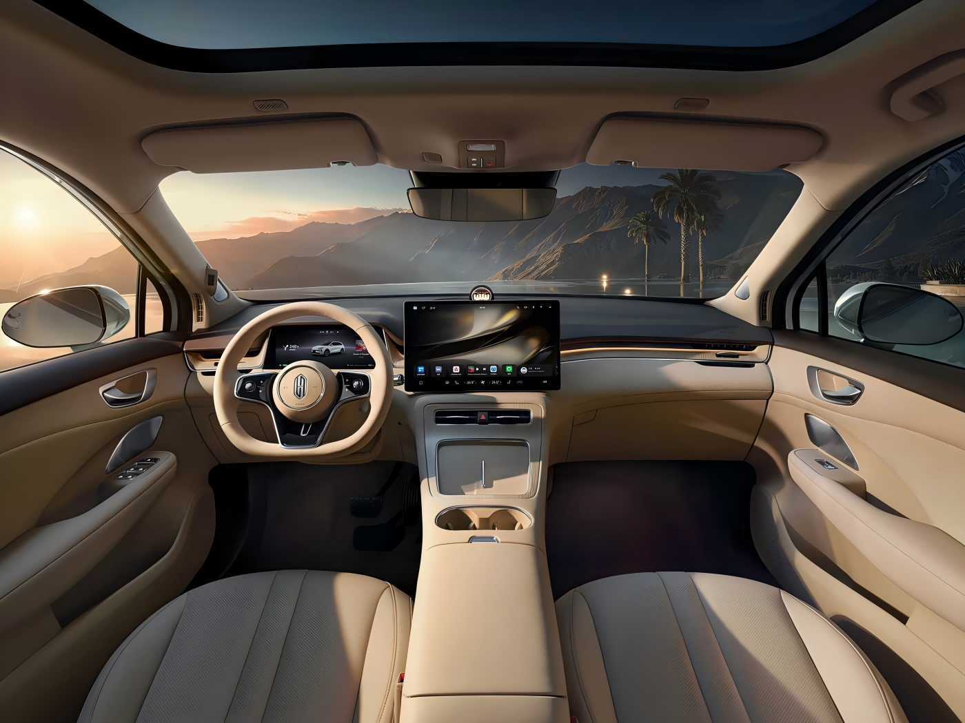 Oficialmente, también se publicó simultáneamente una imagen oficial del interior en color Shaohua Apricot. Se combina con un volante multifunción de tres radios, el icónico difusor en forma de estrella de la familia Harmony Intelligent Mobility, una pantalla de control central flotante y un panel de instrumentos LCD completo, que se espera que brinde una excelente experiencia inteligente. Mientras tanto, el respaldo de los asientos delanteros debería estar equipado con interfaces HUAWEI MagLink, permitiendo la expansión de dispositivos en los asientos traseros a través de soportes magnéticos. Además, basándose en Harmony Cockpit, se puede realizar un enlace interactivo multipantalla.